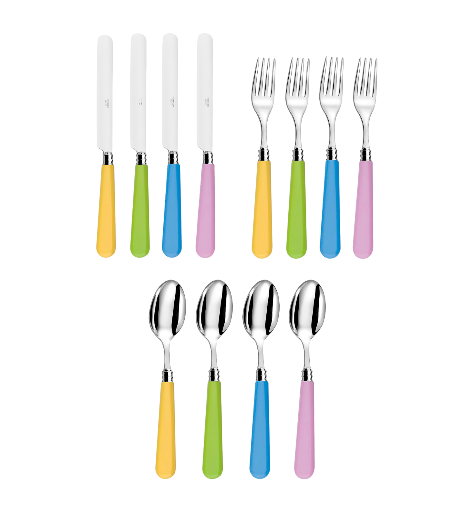 The Cutlery Set 12 Pieces in Pastel Multicolour is the perfect addition to your kitchen for that fun and colourful feel. Be ready to make a striking table setting with this amazing cutlery set.