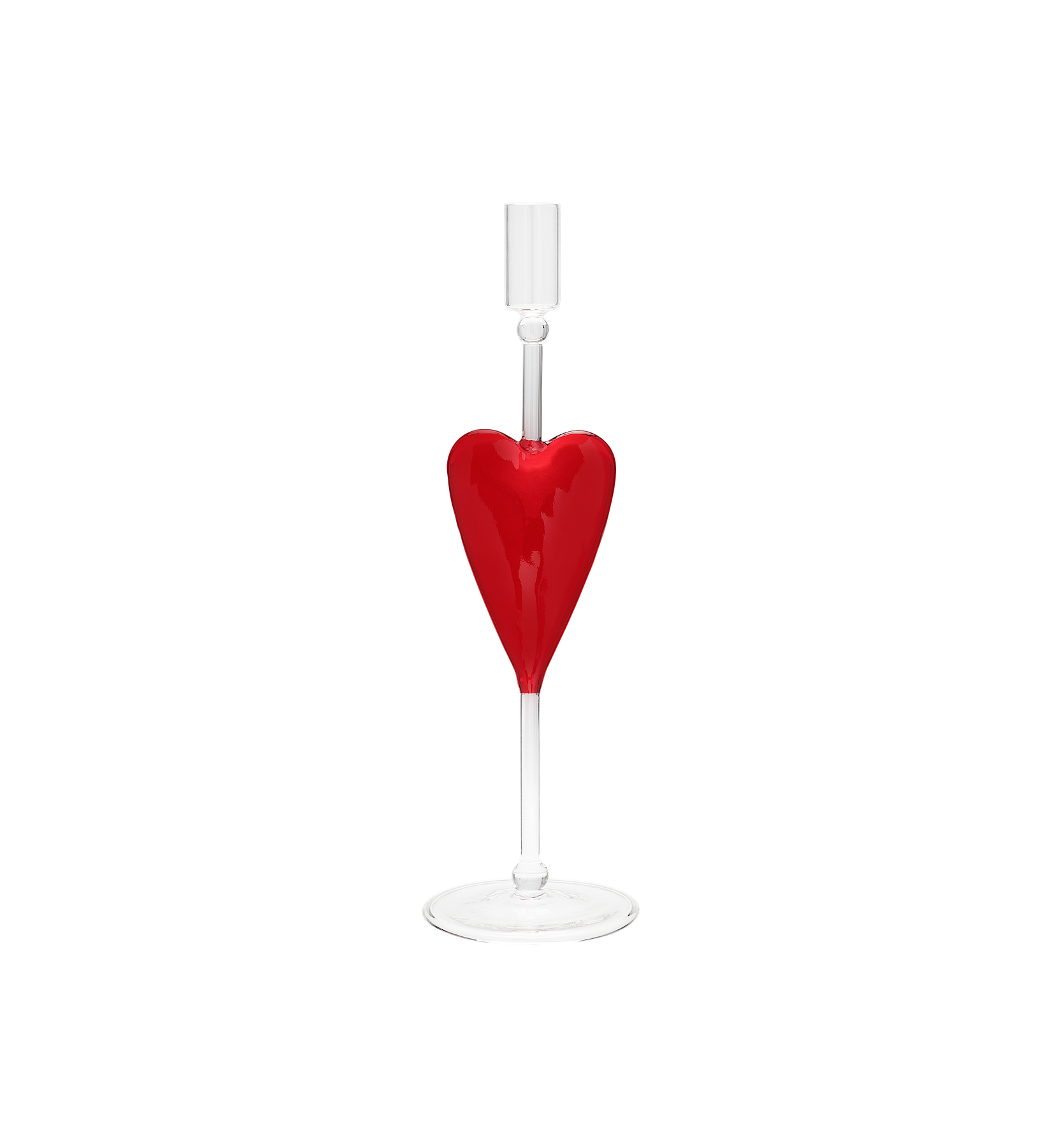 The Poetic Love Candle Holder features a unique design with a large red heart in the centre. This beautiful item is made of glass and mouth-blown. Combine it with other items from the collection for a unique interior.
