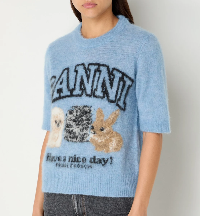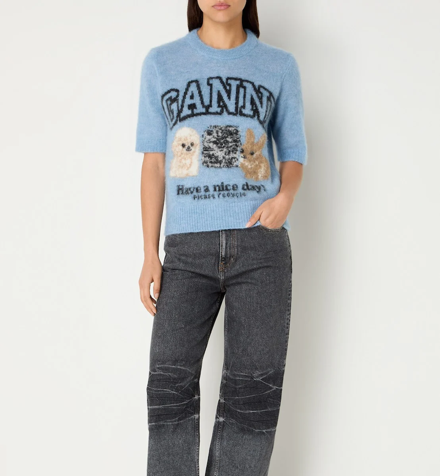 Anna + Nina Women’s Ganni Fine Brushed Alpaca Puppies T-shirt | Blue