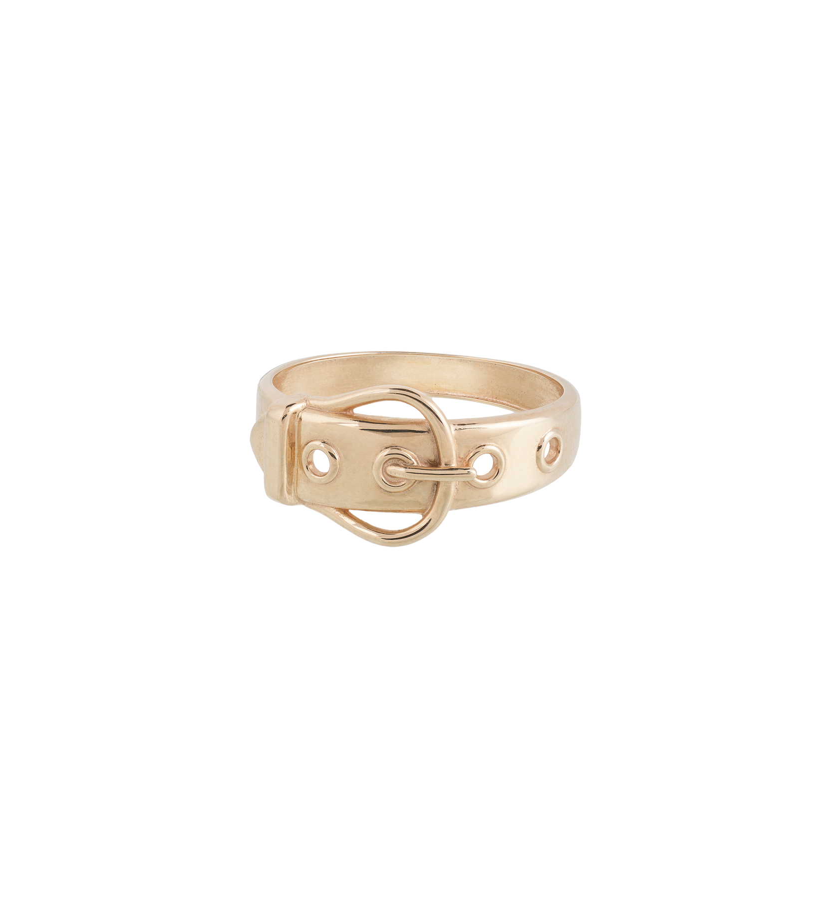 The Buckle Up Ring 14K is made of 14K recycled gold, making it a beautiful and durable item with the detail of a belt. The playful buckle detail adds a playful twist but the minimalist design makes the ring suitable for any combination.