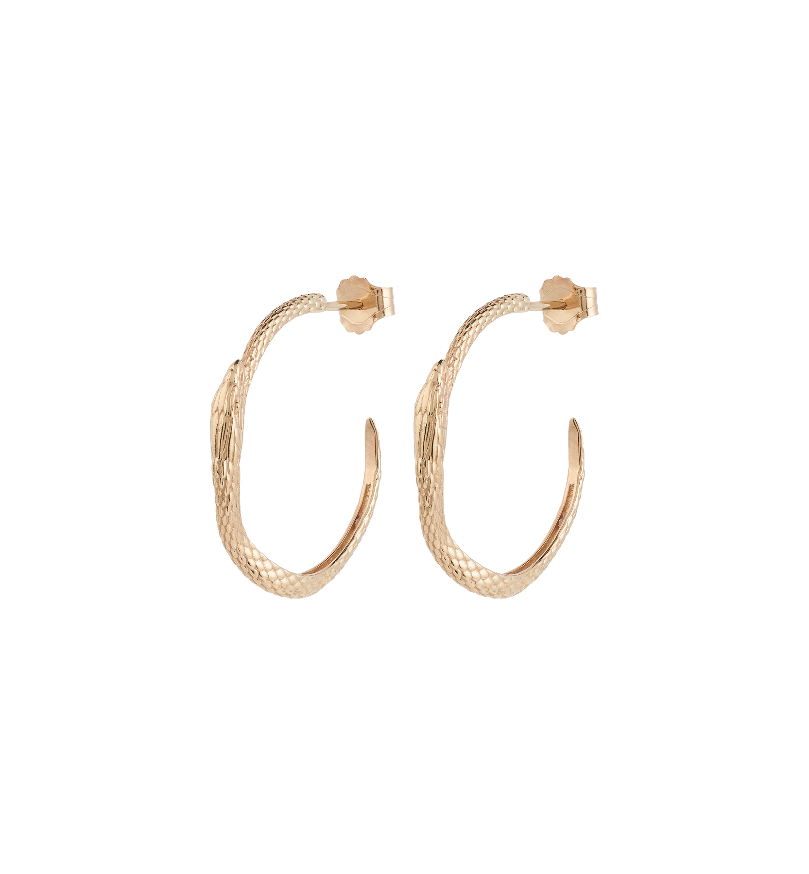 The Charmed Serpent Hoop Earrings 9K is made of recycled 9K, making it a beautiful and durable item. The design is inspired by the elegant coils of a snake, giving these earrings a subtle yet eye-catching look. The timeless shape makes them perfect to wear daily or combine with other jewellery for a unique look.