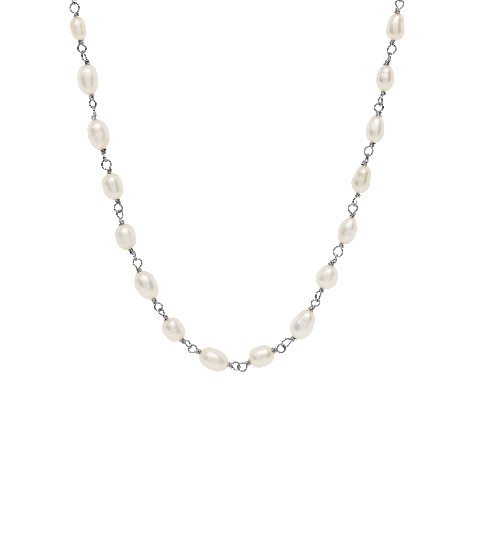 The Clutching Pearls Necklace is a stunning necklace with pearls between the links. This necklace is a real statement piece to complement your look. Pair it with other items from the collection for the perfect match.