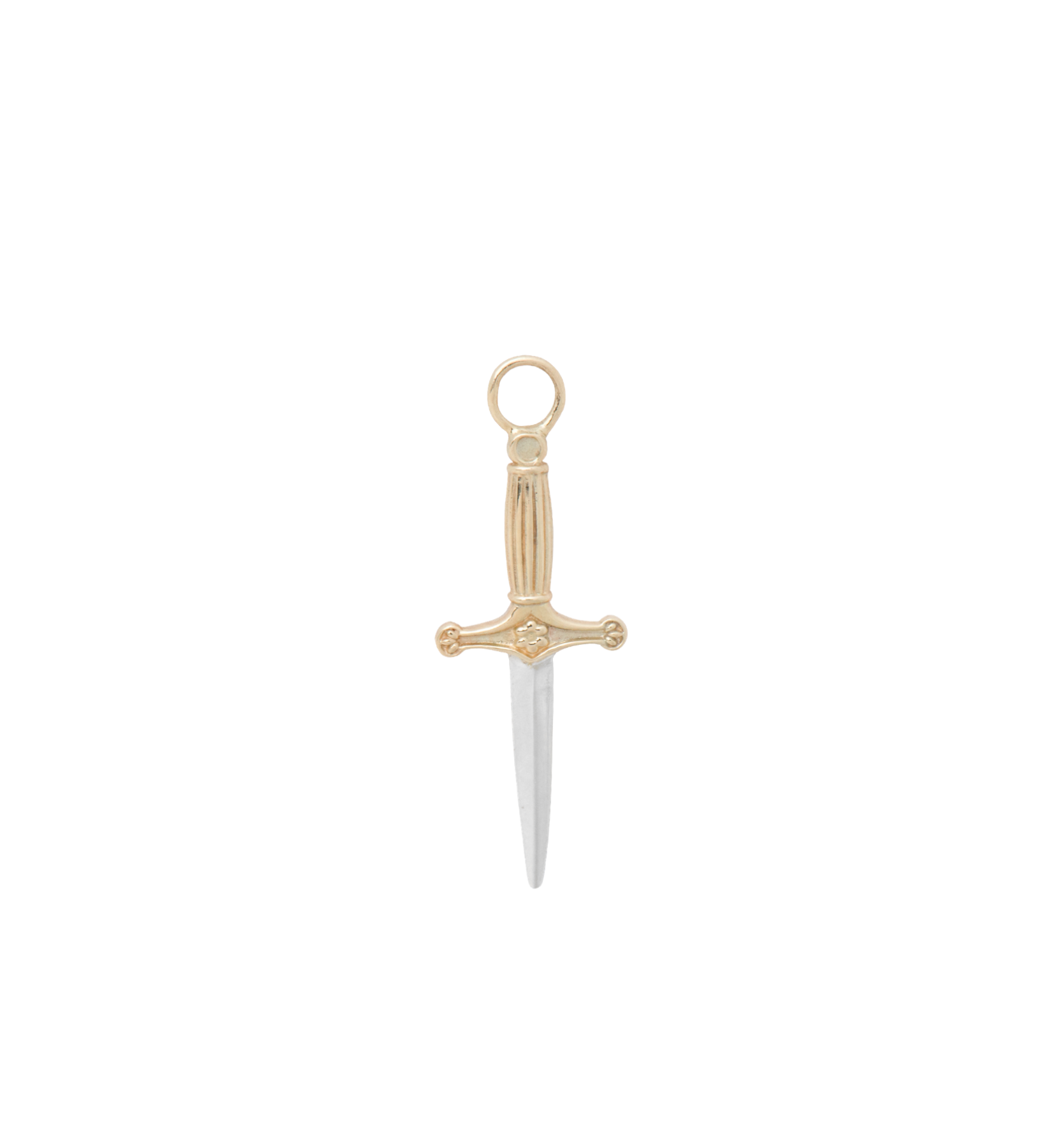 The Gatekeeper Earring Charm 14K is made from 14K gold and silver. The charm has an intriguing design and will stand out when wearing it. Wear it behind your piercing or on a subtle earring. This will be the perfect addition to your ear.