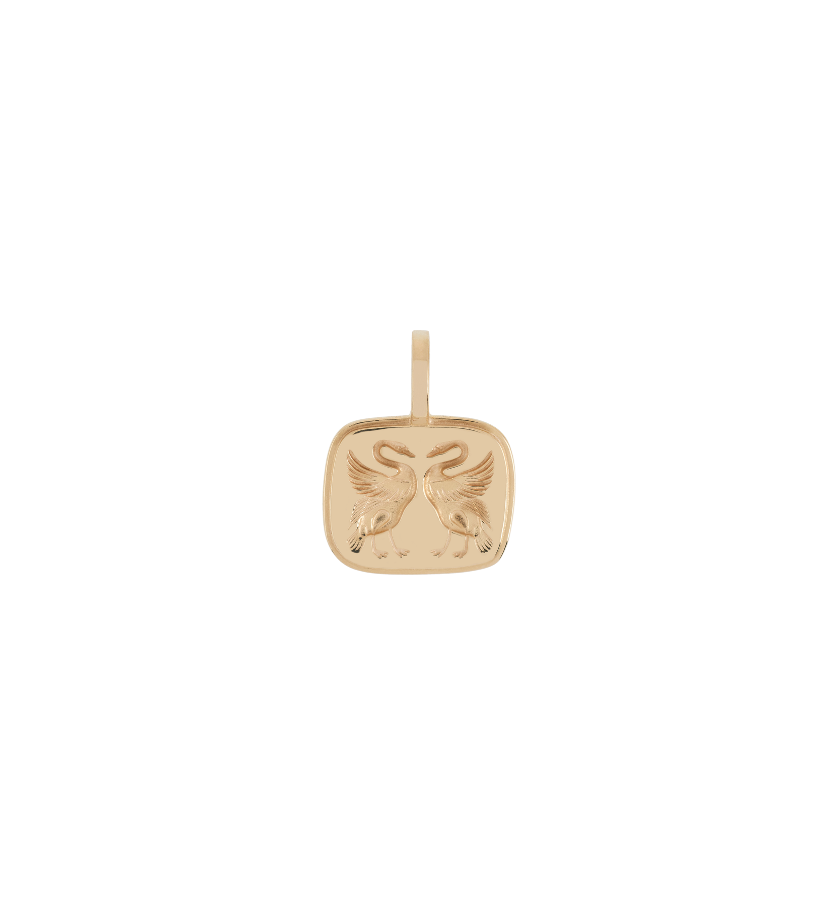The Lovebirds Necklace Charm 14K is made of recycled 14K gold, making it a beautiful and durable item. This item has two beautiful lovebirds carved into it, making it unique. Let this piece of jewellery add a touch of love to your outfit.
