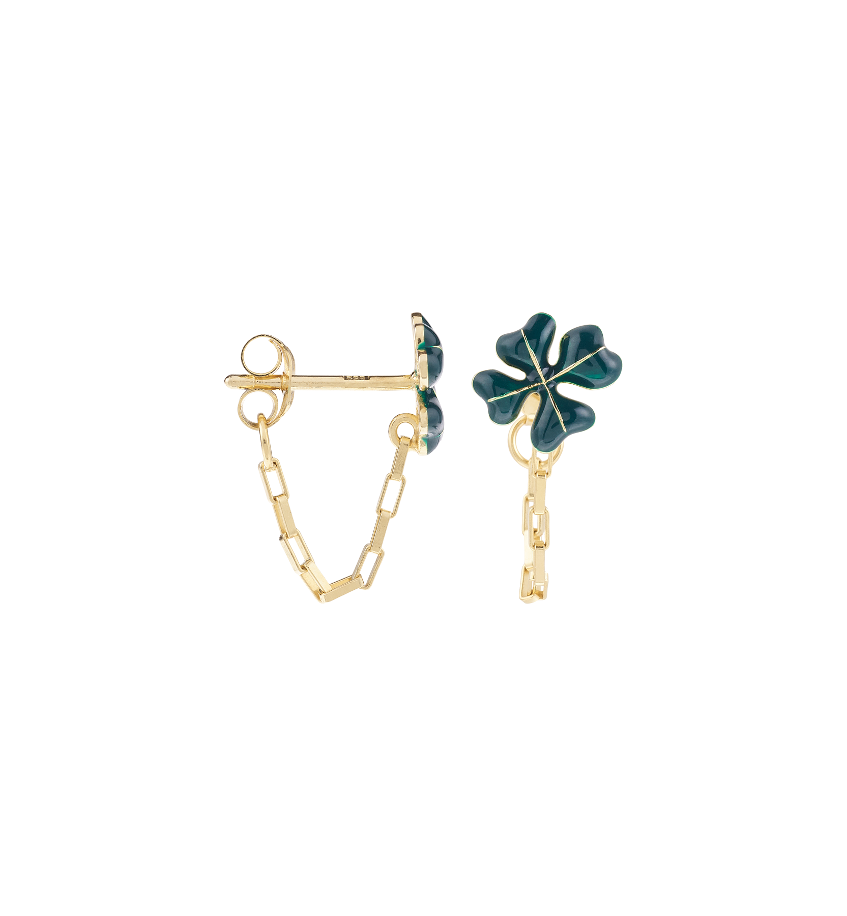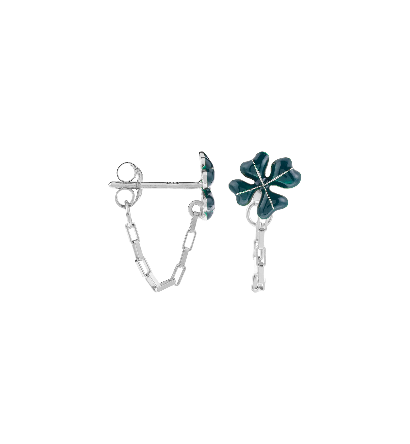 The Lucky Shamrock Chain Stud has a beautiful design in the shape of a four-leaf clover with a deep green colour. Pair it with your favourite jewellery and carry happiness with you.