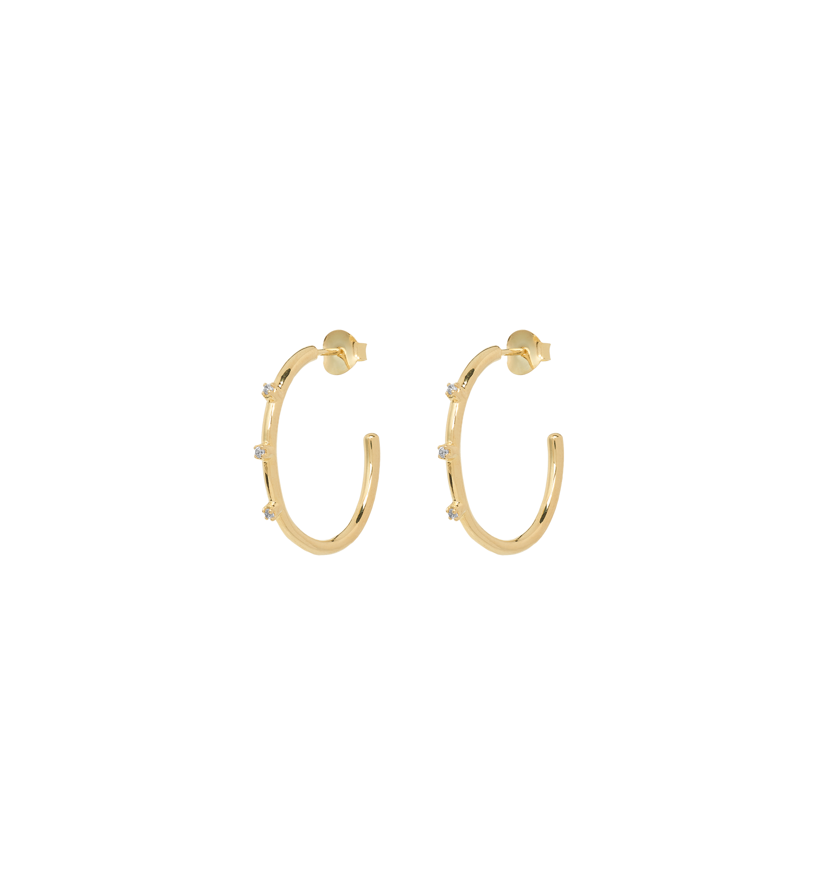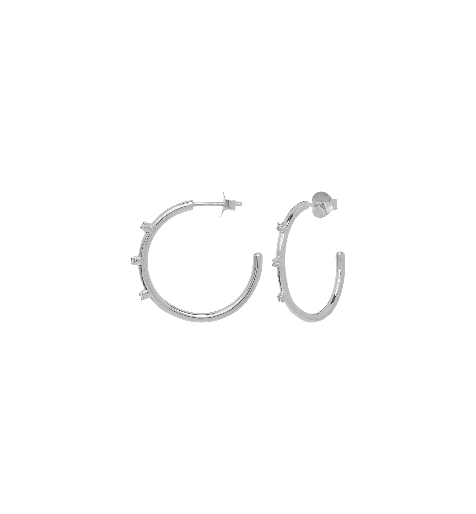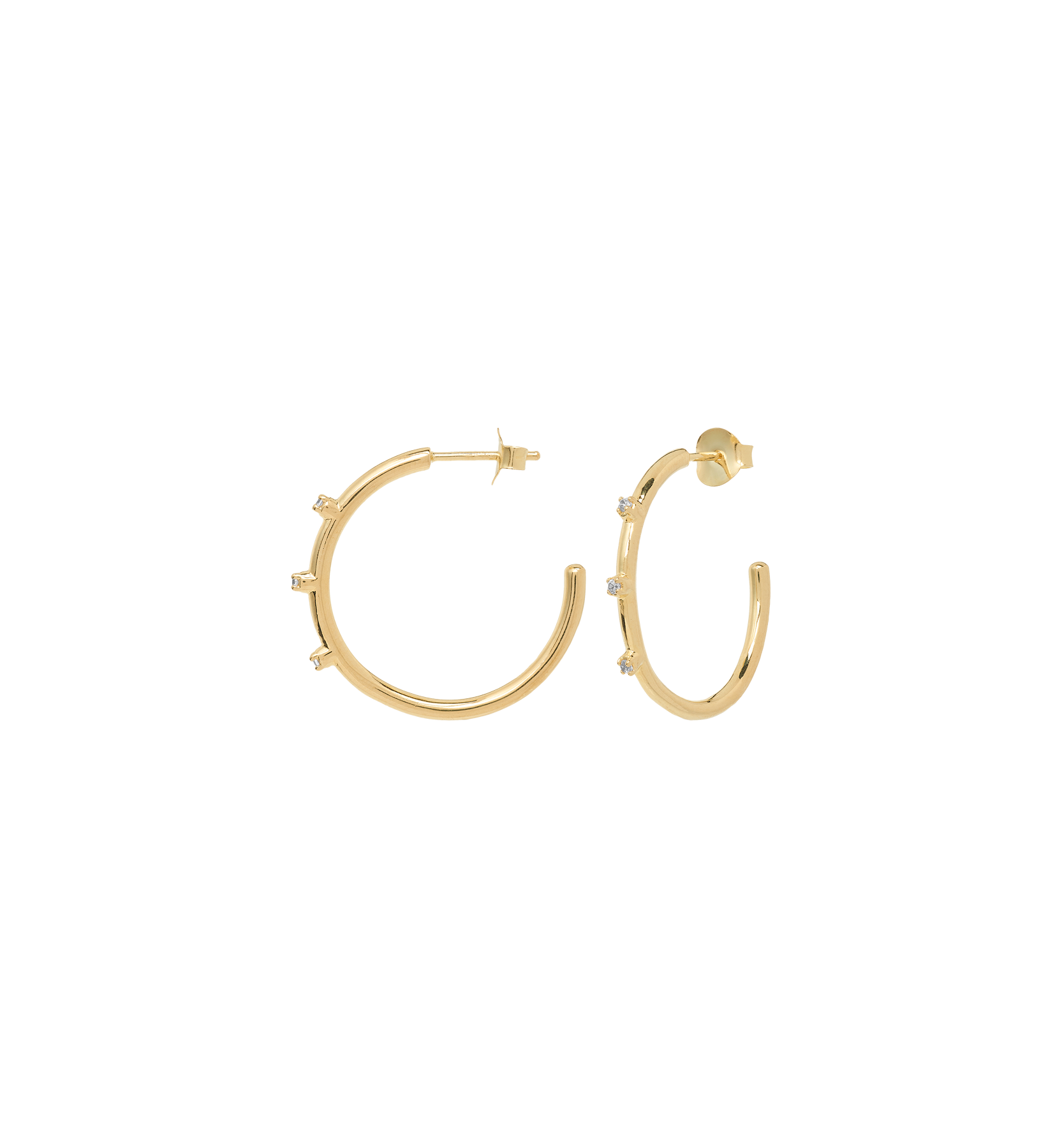 The Medium Lumière Hoop Earrings are basic earrings with charming detail. The three Zirconia stones give the earring a playful twist. Wear this item for a night out or with a casual outfit.