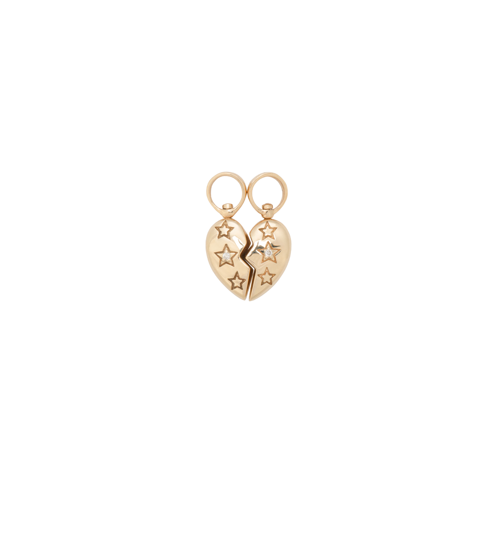 The Piece of My Heart Set of 2 Charms 14K is crafted from 100% recycled 14K gold and has a nostalgic broken heart design with star engravings inlaid with a diamond, which results in two charms you can share with a loved one. It’s the perfect jewellery piece to express your admiration and love.