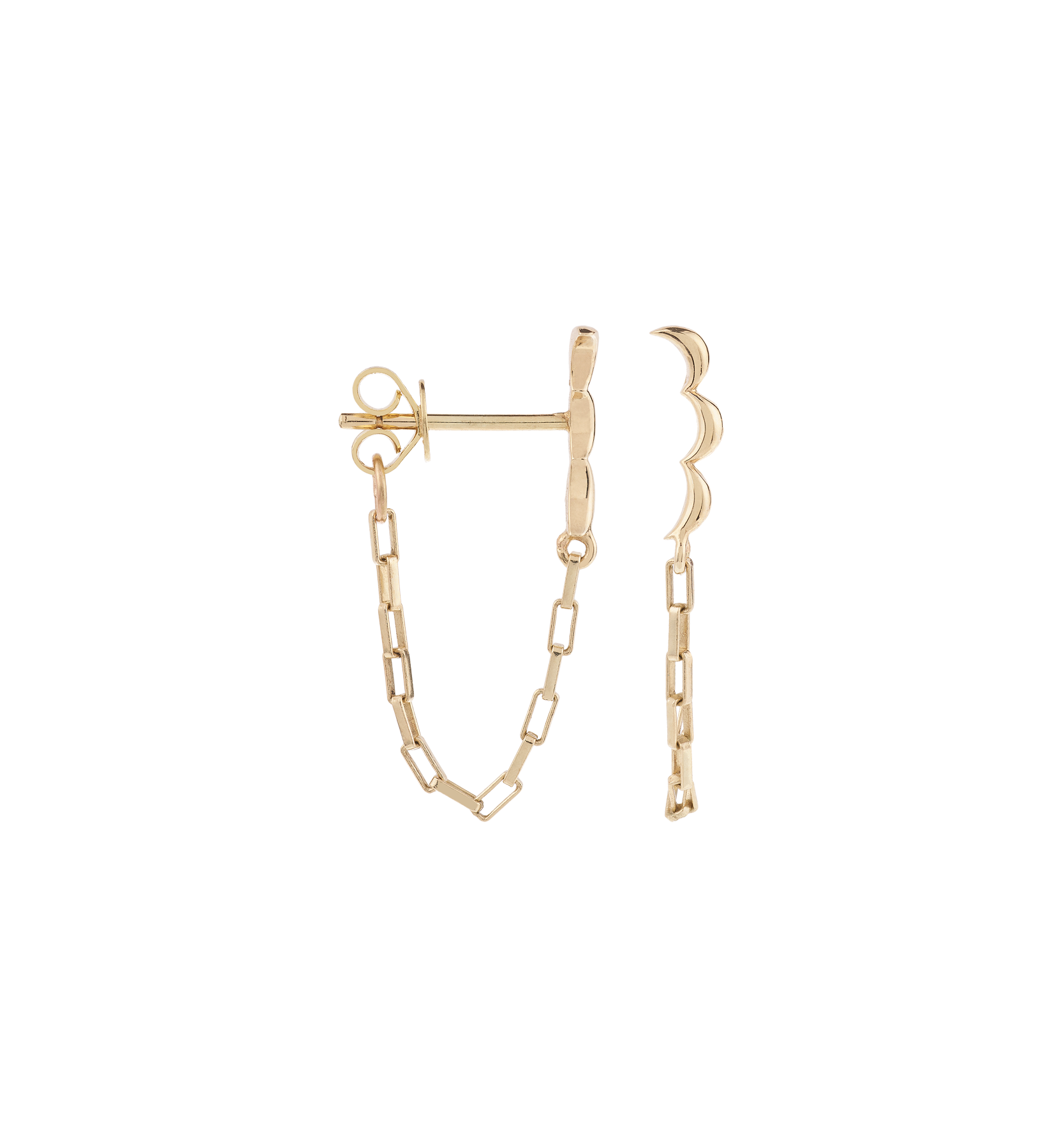 The Single Ornament Chain Stud 14K is made of recycled 14K gold, making it a beautiful and durable item. The moon design is inspired by the ornamental details along the walls of the Palace of Versailles. This earring is a unique addition to your jewellery collection.