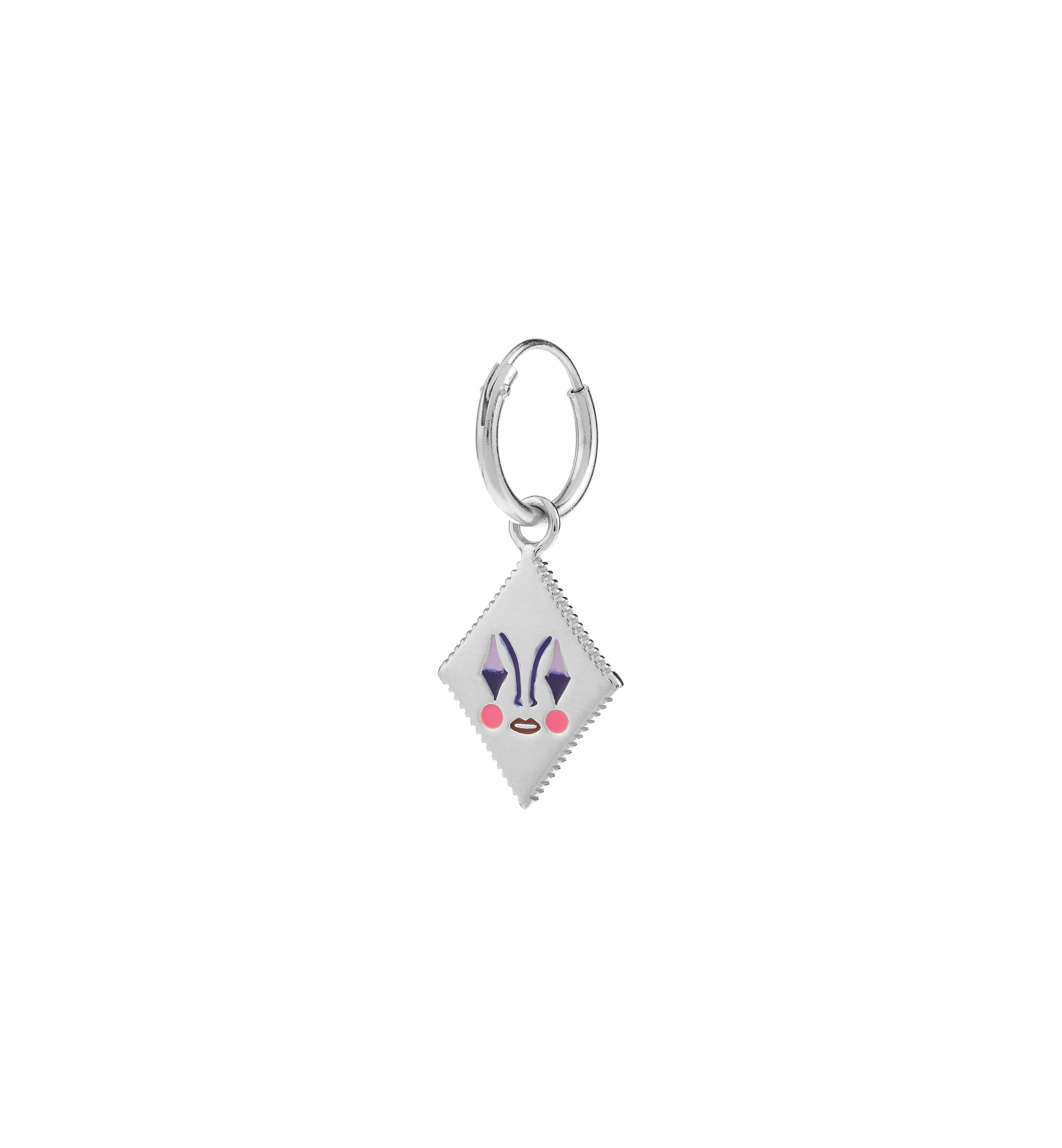 The Single Pierrot Card Ring Earring is a fun item with a pierrot card design. The earring has a knurled rim and enamel details. Wear it together with other earrings from the collection for the cutest combination.