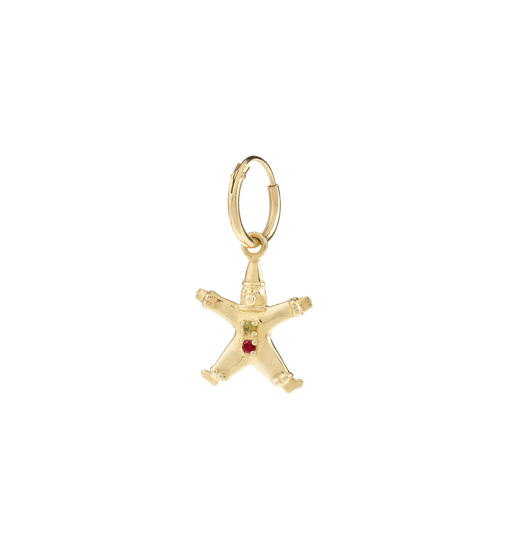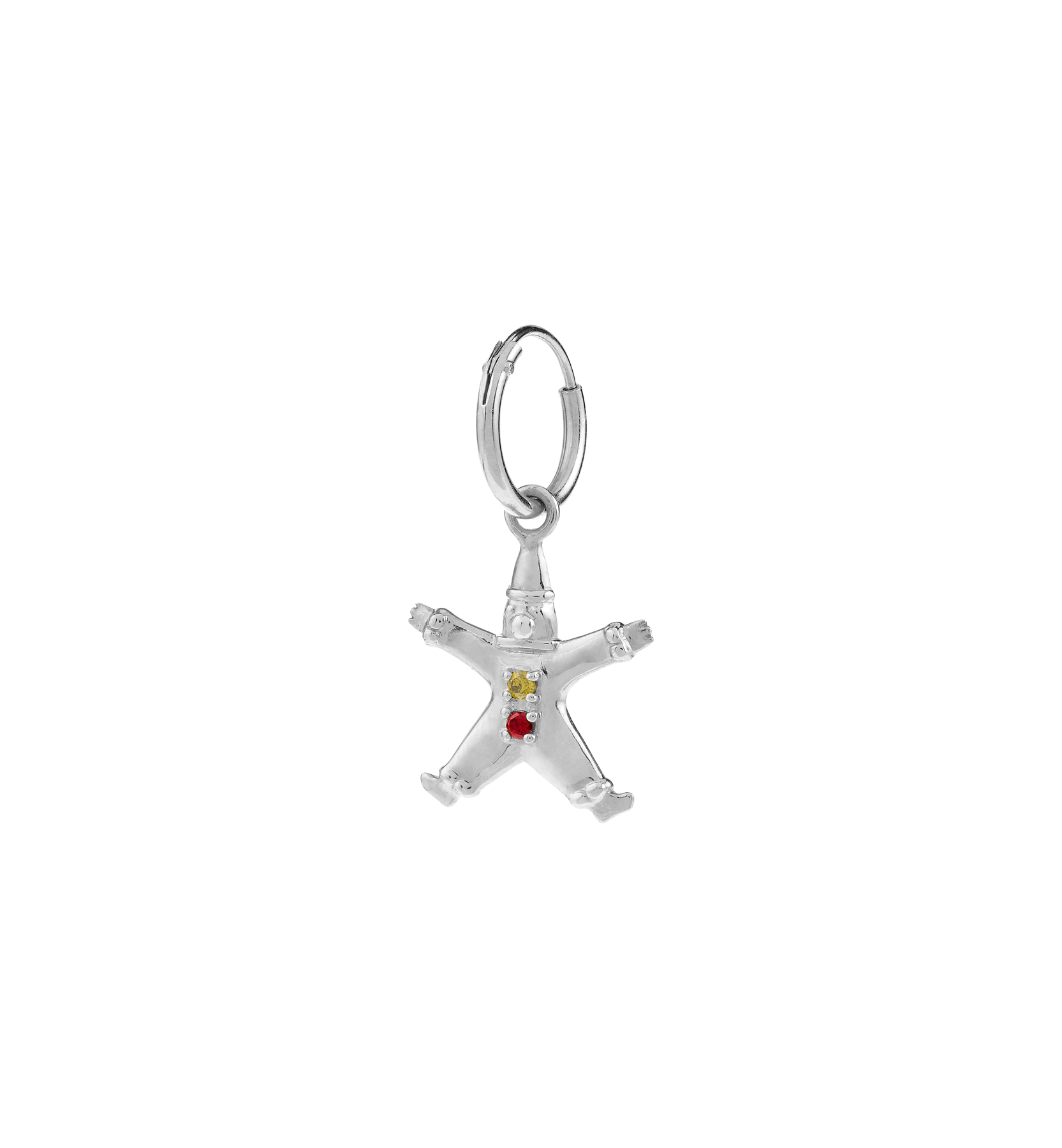 The Single Pierrot Ring Earring is a fun item with a pierrot design. The pierrot has two zirconia gemstones as buttons on its belly. Pair it with your favourite earrings for the cutest combination.