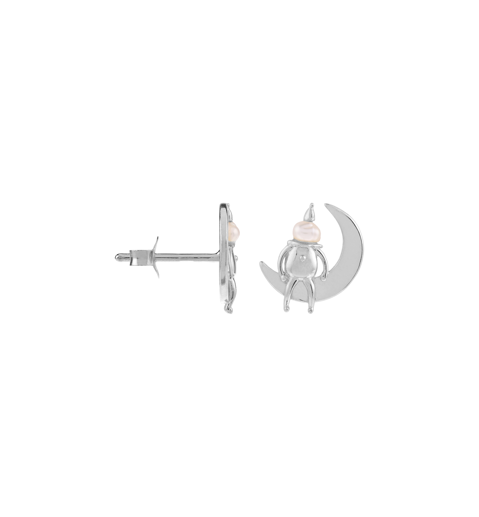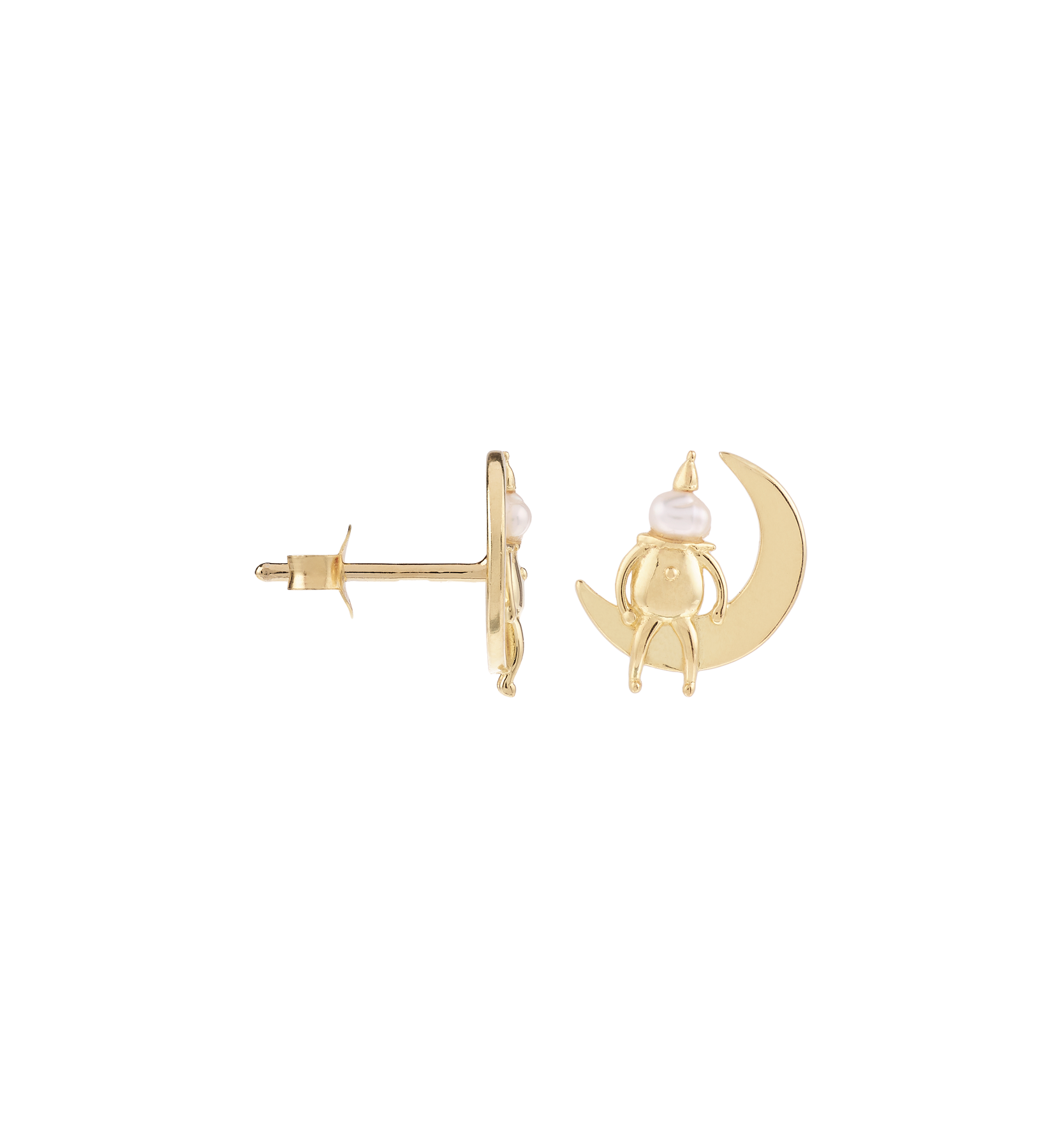 The Single Pierrot Stud is a beautiful item of a Pierrot design resting on a moon. The Pierrot’s face is a pearl which makes this a unique item. Pair it with other items from the collection for the most beautiful combinations.