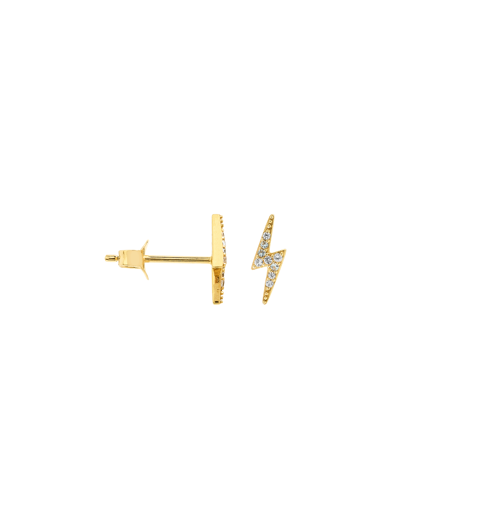 The Single Struck by You Stud Earring 14K is a piece that will stand out when wearing it. The stud is made using 14K gold and has a lighting bolt design inlaid with glistening Aquamarine gemstones. This will be the perfect addition to your ear.
